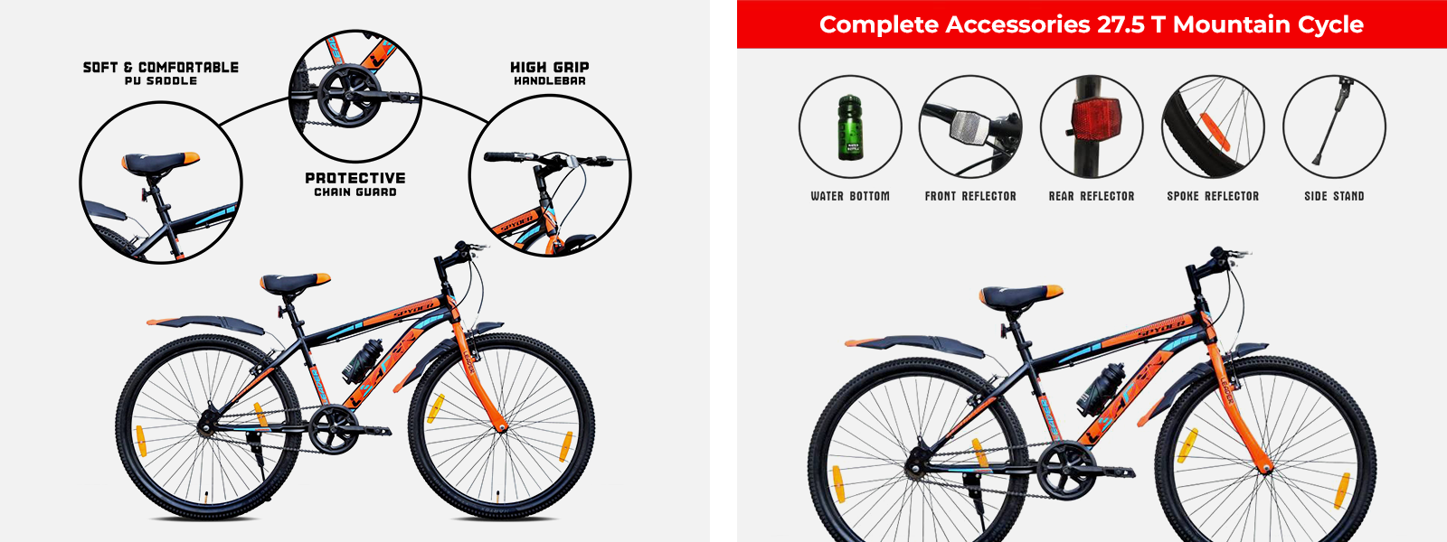 Caliper Brakes for Effortless Braking system built for their ease of use and maintenance, and excellent braking power. Specially designed to provide proper braking control on all terrains. BCP Type Handlebar designed specifically to keep a comfortable riding positing with soft Rubber Grips for comfortable long rides.